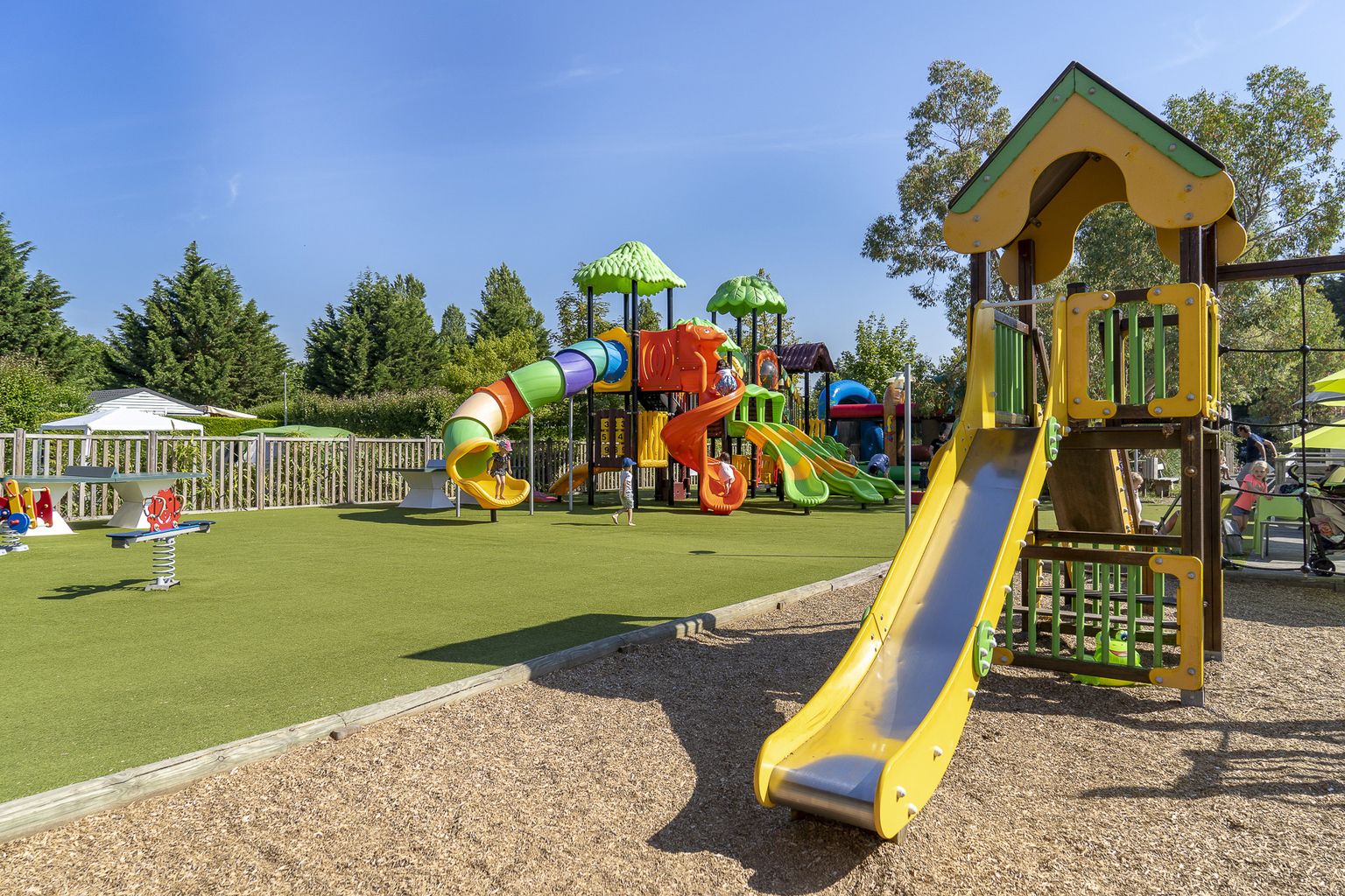Not all resorts have pool attendants on duty and those that do may only be present in July or August, or for a limited time during the day. We strongly advise you supervise your children at all times when they are using swimming pool/water chutes/slides.