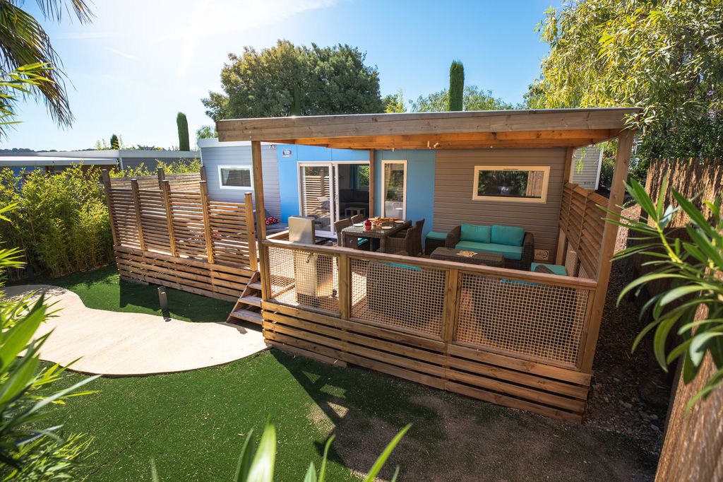 Domaine du Colombier is a 5-star village located in the heart of the French Riviera between Cannes and Saint-Tropez. Only 4.5 km from the golden sandy beaches. Surrounded by palm, pines and olive trees, the campsite has a lovely subtropical feel. With excellent facilities and entertainment and an excellent aquatic park, Domaine du Colombier is the perfect place to make the most of a holiday on the Côte d’Azur.